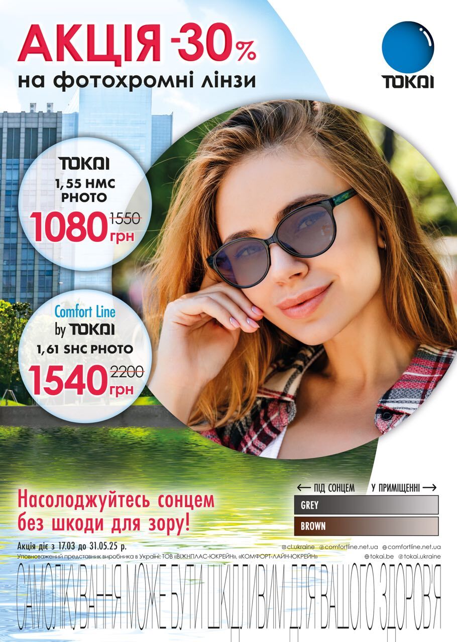 Лінзи Divel Italia 1,56 Photochroma HMC - має фотохромну технологію, що робить її дуже легкою та комфортною для носіння. Ці лінзи підходять для астигматиків до -2,00Д, а колір можна вибрати між сірим та коричневим.